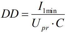 על מנת לחשב את ערך זה, המכשיר מודד ומאחסן בנוסף את הקיבול של האובייקט הנבדק ואת מתח הבדיקה, ערכים אלה מוחלפים בנוסחה שלהלן:
